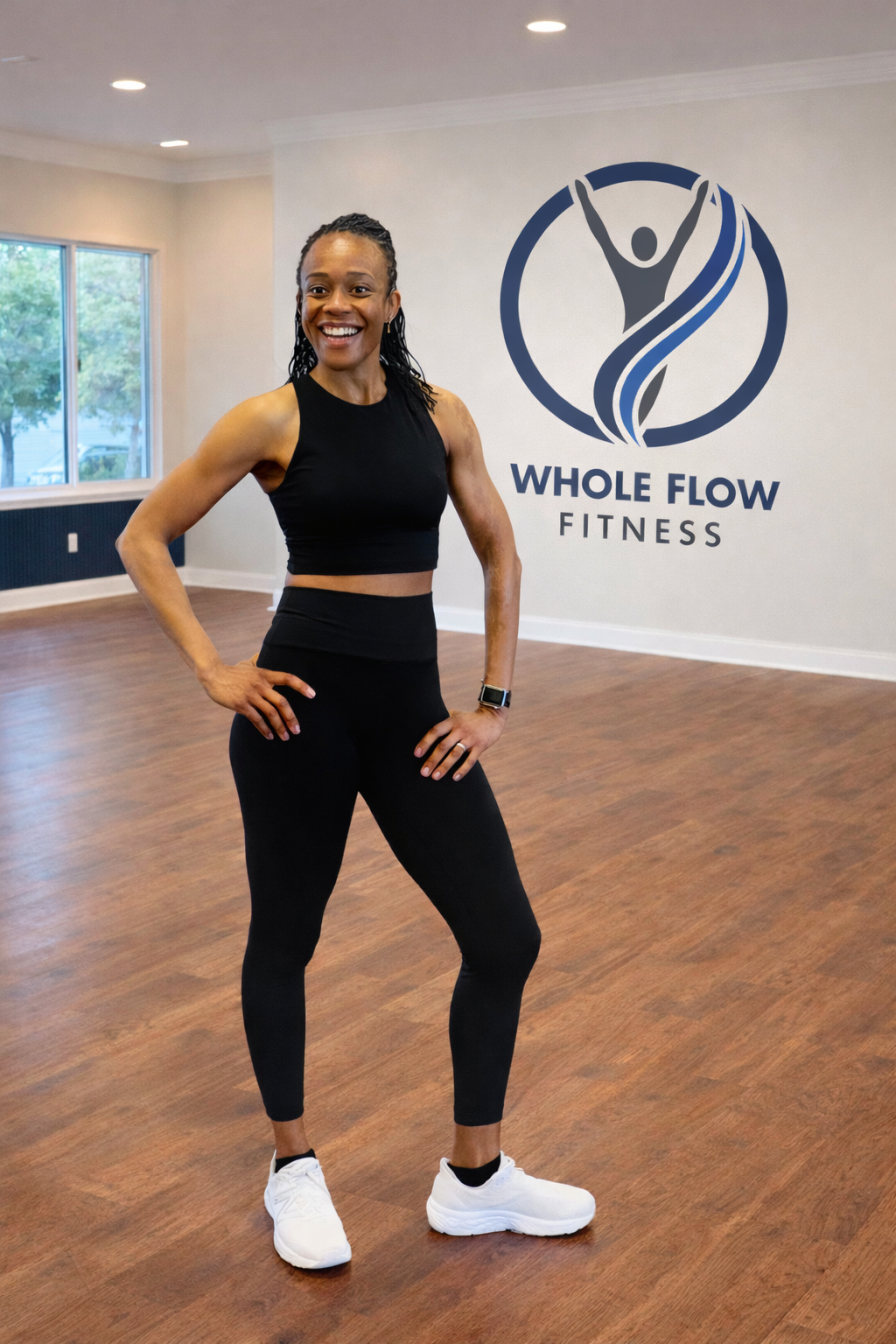 Through Whole Flow Fitness, Myesha fosters a supportive community where people of all fitness levels can grow stronger, improve mobility, and reconnect with the natural joy of movement. She believes every body is beautiful and capable, and that movement helps us better understand ourselves and how we move through the world.
